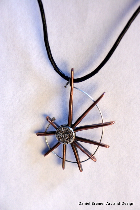 Spoked pendant; copper, sterling silver