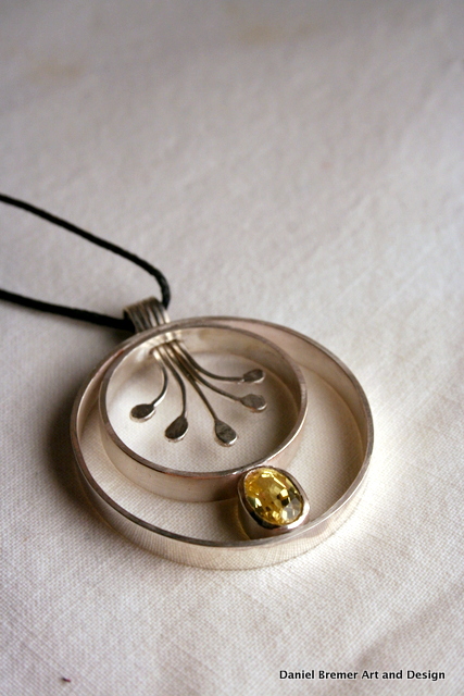 Rooted pendant; sterling silver, yellow sapphire